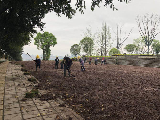 兩江建設公司組織100余工人 連續(xù)搶工兩江新區(qū)綠化工程
