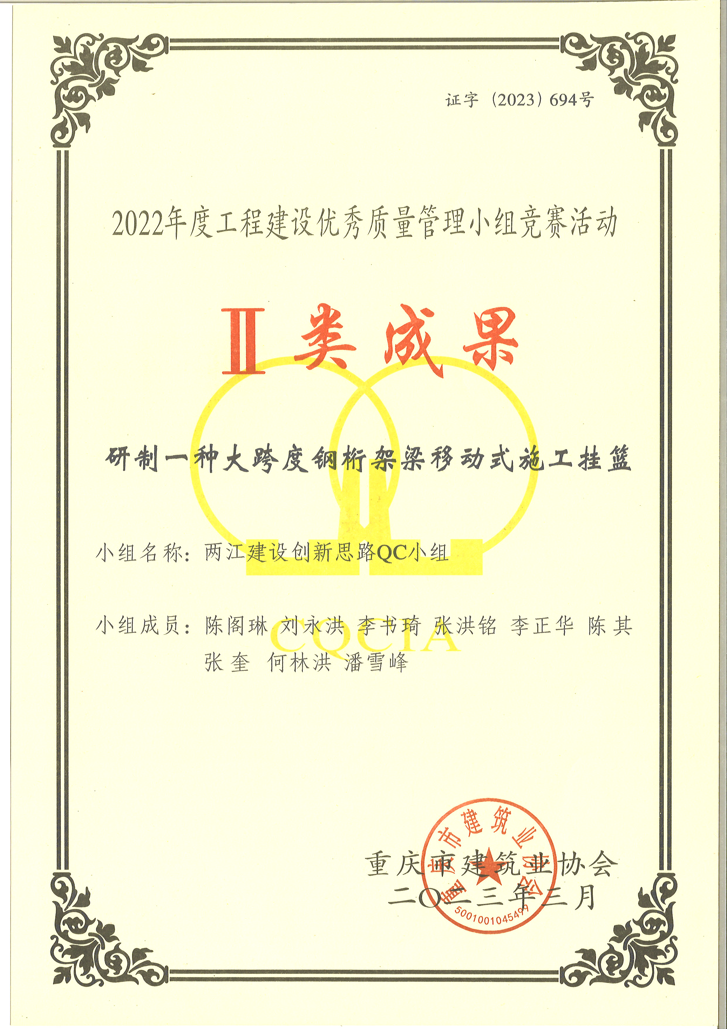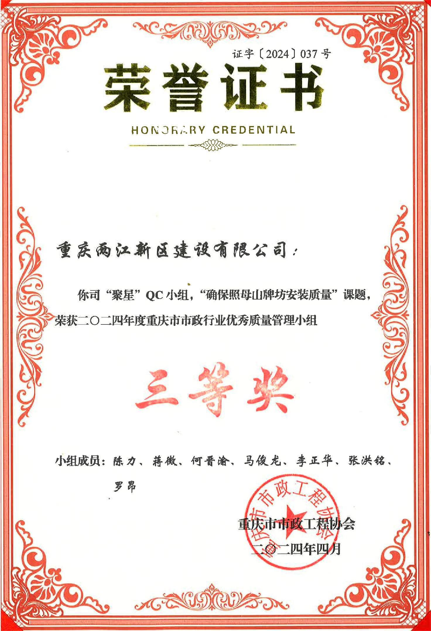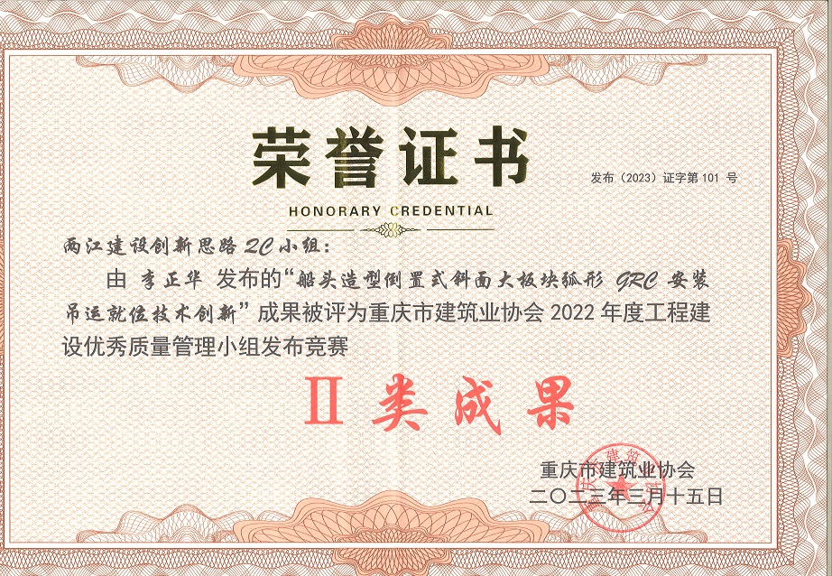 重慶市QC成果獎項(xiàng)