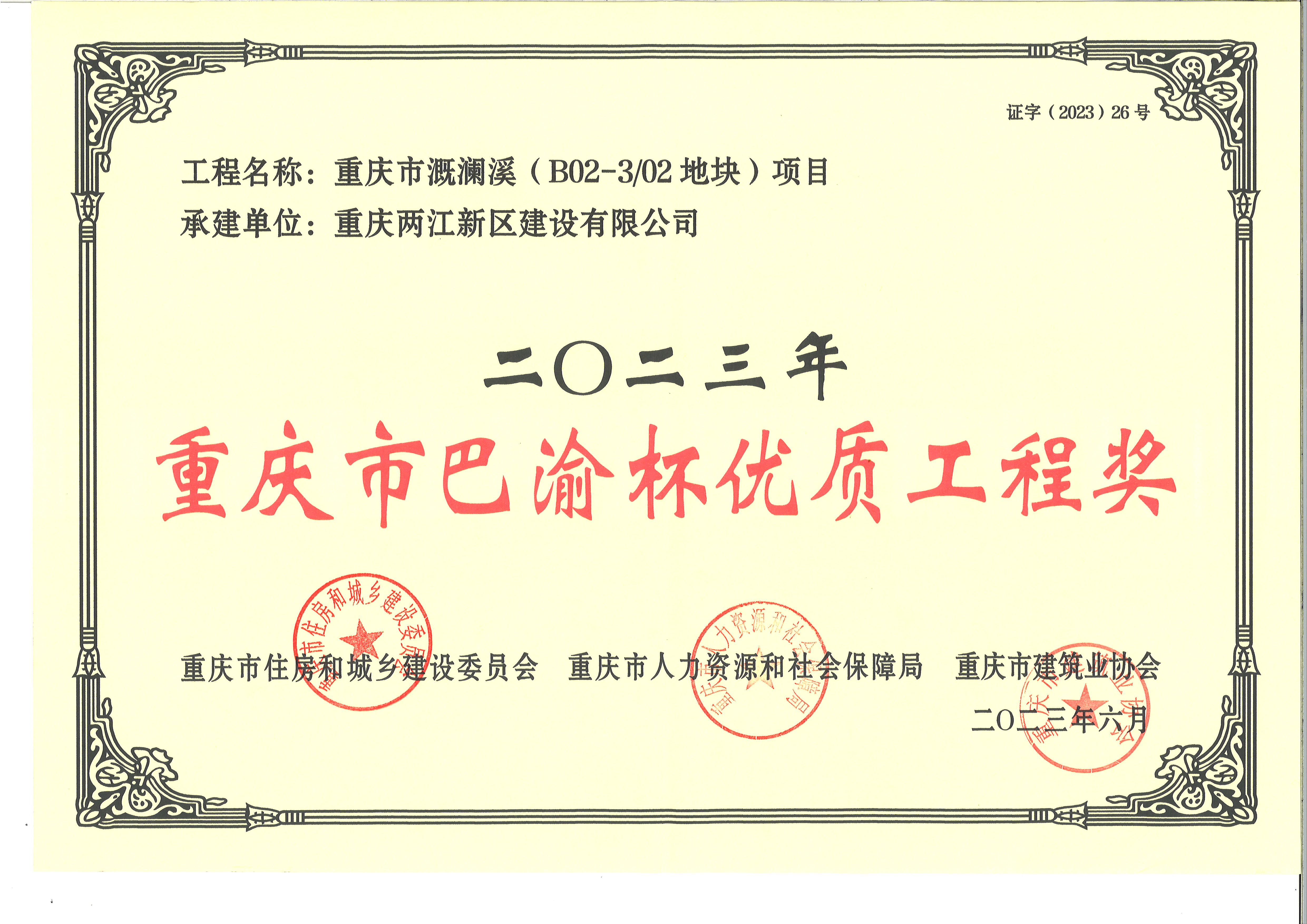 溉瀾溪住宅項目獲得巴渝杯優(yōu)質(zhì)工程獎