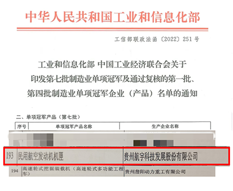 制造業(yè)單項(xiàng)冠軍企業(yè)(產(chǎn)品) 航宇科技再添國(guó)字號(hào)榮譽(yù)